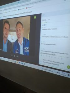 30 września 2025 r. uczniowie z naszej szkoły wzięli udział w spotkaniu online z kosmonautą Sławoszem Uznańskim-Wiśniewskim, który m.in. opowiedział, dlaczego warto się uczyć wszystkiego, ile czasu zajęło mu zostanie kosmonautą i jakie emocje towarzyszyły mu w czasie lotu na międzynarodową stację kosmiczną.