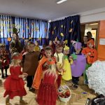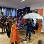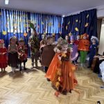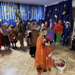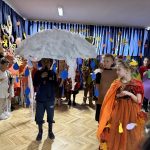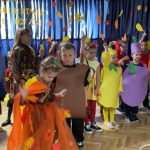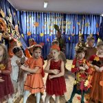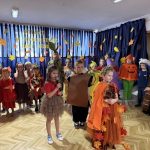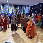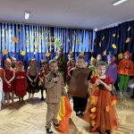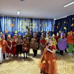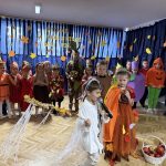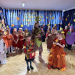 Na scenie pojawiła się Pani Jesień – początkowo skromna i zmartwiona bez swojego słynnego płaszcza z liśćmi. Ale nie martwiła się długo. Przy dźwiękach radosnych piosenek z pomocą przyszli nasi mali aktorzy – pełni pomysłów, uśmiechów i fantazji. Ubierały Panią Jesień kawałek po kawałku, aż na koniec stała się prawdziwą królową tej barwnej pory roku!