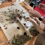 Uczniowie wysłuchali teatrzyku kamishibai „Mój przyjaciel Kemushi” oraz wykonali prace plastyczne w postaci makiet, wykorzystując naturalne materiały m.in. szyszki, liście, żołędzie.