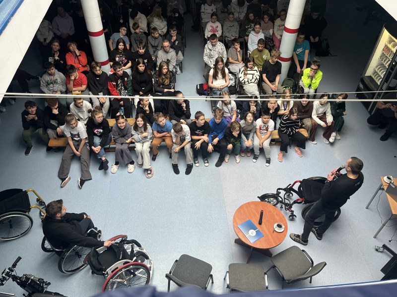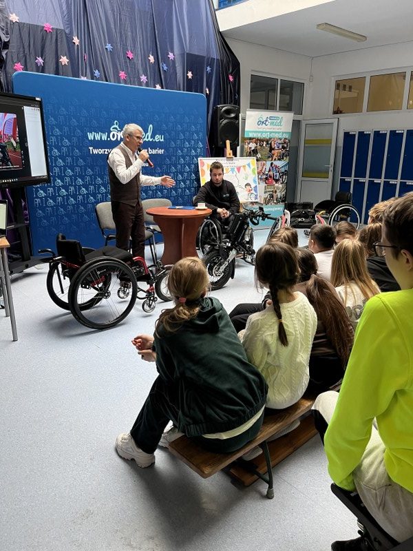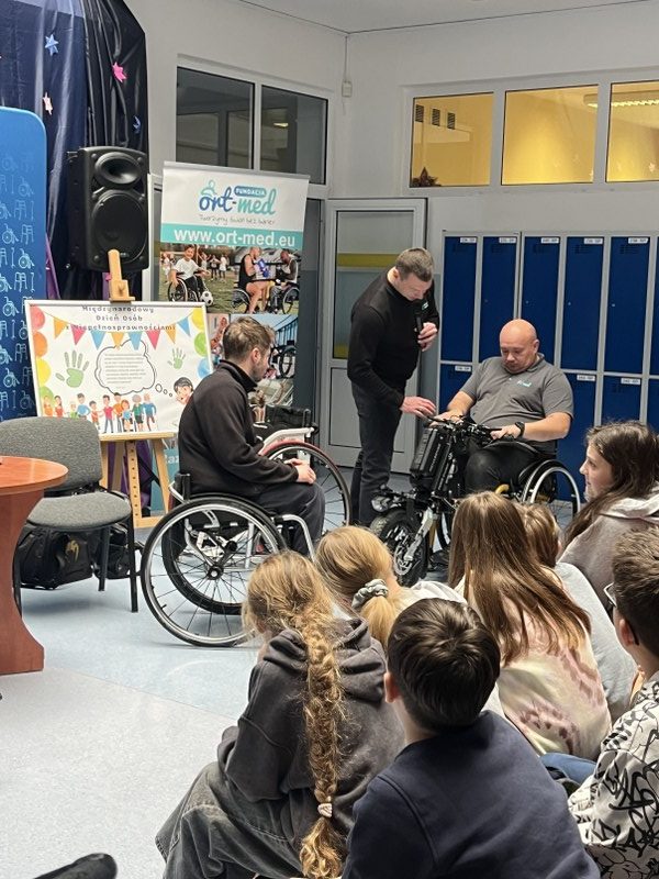 Gośćmi byli przedstawiciele Fundacji Ort-Med: Łukasz Kustra, Marcin Ostrowski oraz Jan Szymczak, absolwent naszej szkoły, którzy podzielili się swoją wiedzą i doświadczeniem w zakresie rehabilitacji, nowoczesnych metodach terapii oraz działaniach na rzecz poprawy jakości życia osób z niepełnosprawnościami.