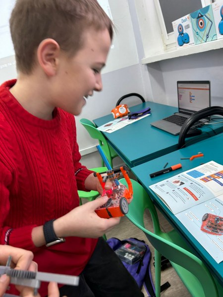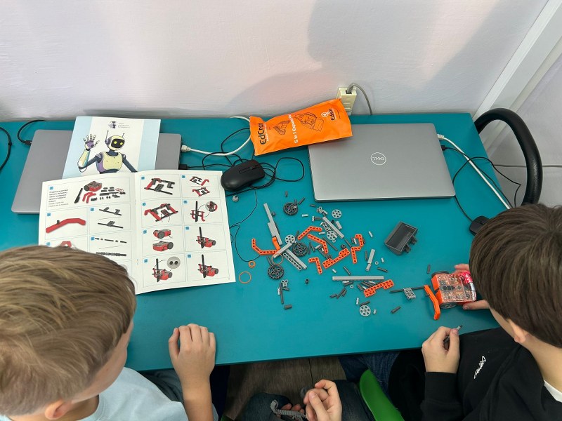 - budowali robota Edison V3 – Rysik, ucząc się elementów mechaniki i elektroniki;