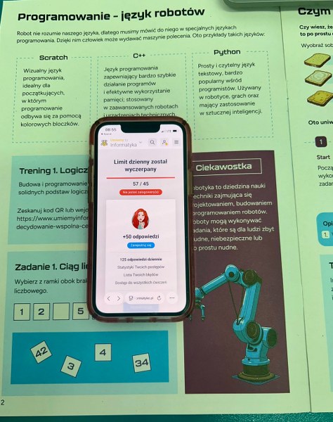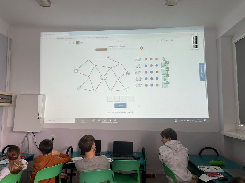 - wykonywali ćwiczenia rozwijające myślenie algorytmiczne, takie jak: układanie własnych algorytmów, rozwiązywanie zadań logicznych, praca z warunkami, pętlami i zmiennymi, analiza przykładowych programów;