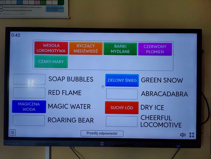 „Otrzymywanie zasad” było tematem lekcji chemii, podczas której, oprócz typowych pojęć chemicznych, uczniowie mogli poszerzyć swoje słownictwo z języka angielskiego. Panie Renata Jesionek i Ewa Rutkowska zainspirowane na kursie na Malcie nauką języka angielskiego przygotowały zajęcia, na których przy pomocy angielskiego mini-słownika pojęć chemicznych uczniowie budowali i opisywali reakcje zasadowe. Ewaluacją zajęć był dwujęzyczny quiz Kahoot. Nie była to typowa lekcja CLIL, ale oprócz poznania wiadomości, dała szansę na ciekawą i fajną naukę przez zabawę.