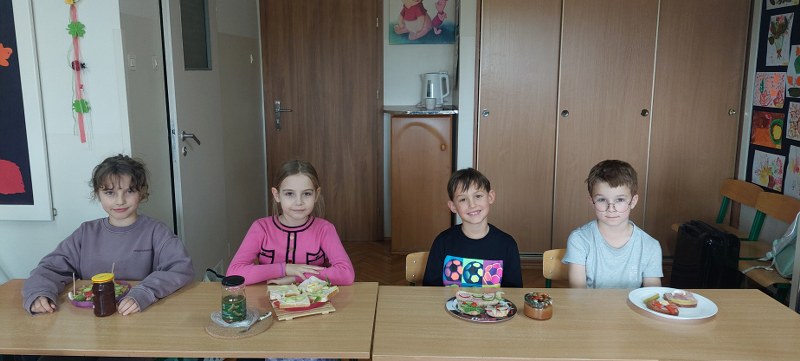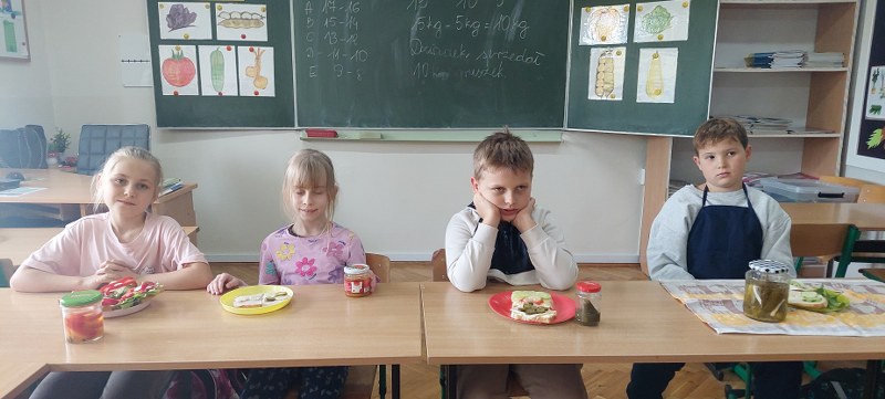 Dzieci dobrze wiedzą, że, aby przystąpić do działań kulinarnych, należy dokładnie umyć ręce i założyć fartuszki. Uczniowie przypomnieli sobie zasady bezpieczeństwa, których należy przestrzegać podczas posługiwania się nożem, po czym wszyscy przystąpili do przygotowania stanowisk pracy i zabrali się do pracy. Zadanie wykonali doskonale. Kanapki były nie tylko smaczne i zdrowe, ale też pięknie ozdobione. Okazało się też, że dzieci jednak lubią warzywa, a najlepiej smakują kanapki wykonane własnoręcznie, dlatego nawet największe niejadki zjadały swoją porcję z apetytem.