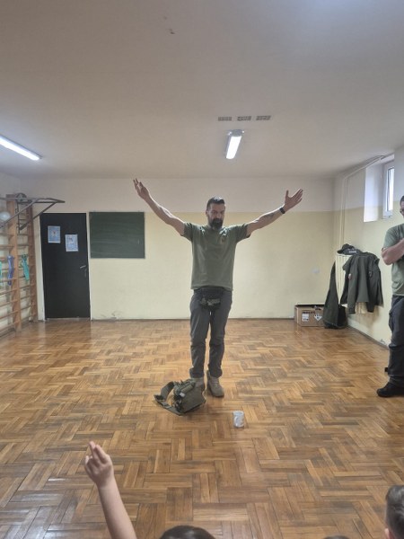 Uczniowie mieli również możliwość zadawania pytań, z czego chętnie korzystali. Panowie ze Stowarzyszenia Contra Fortis cierpliwie i wyczerpująco odpowiadali na wszystkie dociekliwe pytania dotyczące bezpieczeństwa i swojej działalności. Spotkanie przebiegło w bardzo przyjaznej i merytorycznej atmosferze, wzbogacając wiedzę uczniów na temat ważnych aspektów bezpieczeństwa.