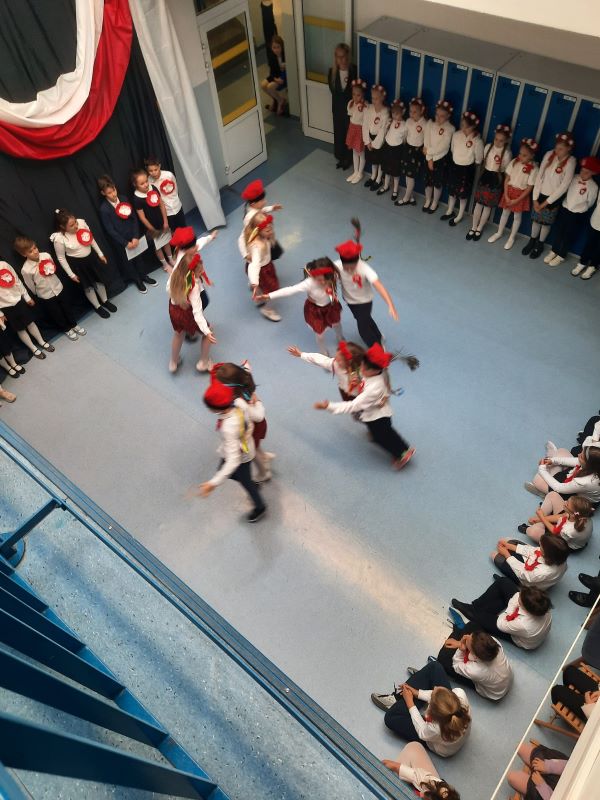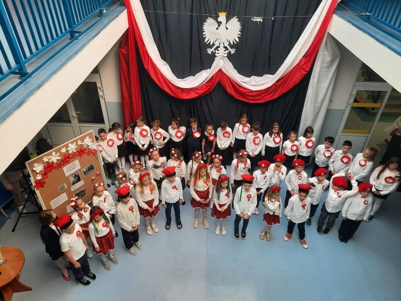Z okazji Narodowego Święta Niepodległości uczniowie z klas 2b, 3a i 3b przygotowali dla klas 0-3 piękne przedstawienie pt. „107 rocznica odzyskania niepodległości przez Polskę”. Uroczystość rozpoczęła się od krótkiej inscenizacji, w której przypomniano, dlaczego ten dzień jest tak ważny dla wszystkich Polaków. W kolejnych scenach uczniowie z ogromnym zaangażowaniem opowiadali o trudnej drodze Polski do wolności i śpiewali pieśni patriotyczne.