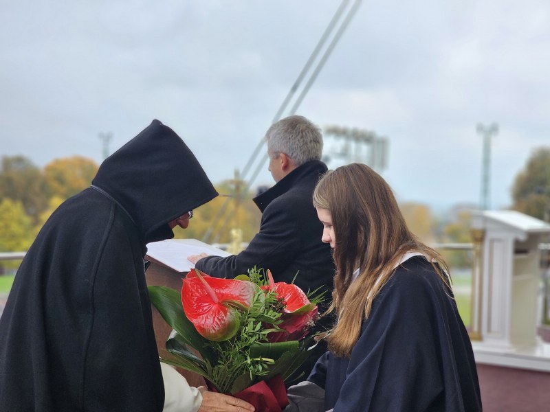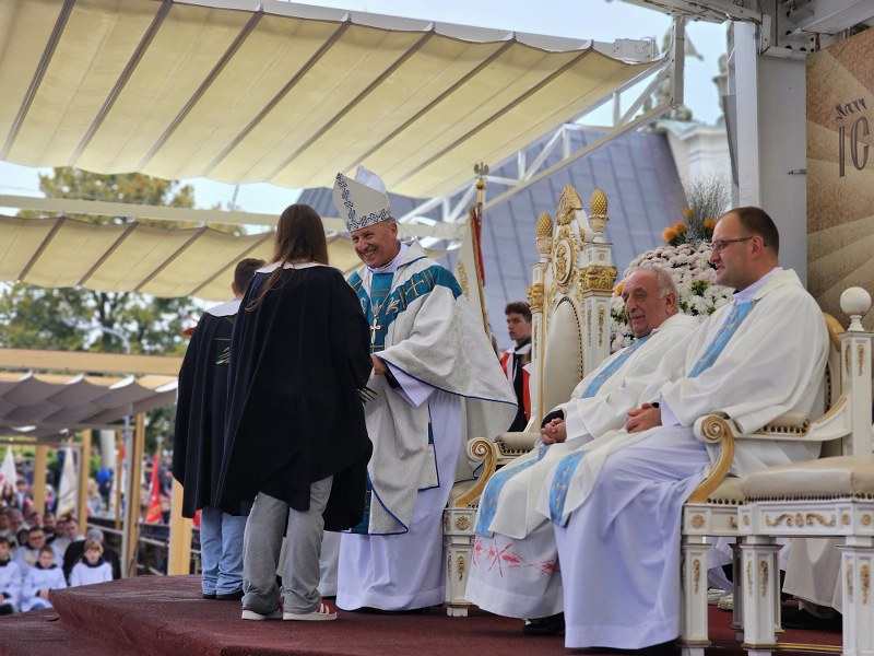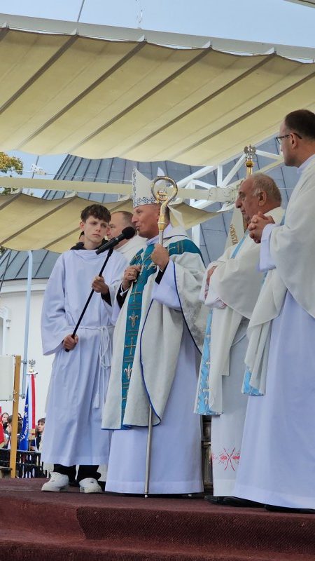 Bezpośrednio po mszy świętej odczytano Akt zawierzenia Rodziny Szkół im. Jana Pawła II Matce Bożej Królowej Polski. Następnie odczytano list do Ojca Świętego Leona XIV. 25 lat jubileusz pielgrzymki stał się pretekstem do podziękowań, które w imieniu Społecznej Rady Rodziny Szkół im. Jana Pawła II przekazał jej przewodniczący – p. Jan Rychlicki. Wspomniał o kolejnych biskupach radomskich, którzy opiekowali się pielgrzymami. Przypomniał początki Rodziny Szkół i złożył podziękowania państwu Małgorzacie i Zbigniewowi Gumińskim oraz p. Halinie Marciniak, pierwszej przewodniczącej Rady Rodziny Szkół. Nie zapomniał również o pracownikach PSP nr 14 Integracyjnej z Radomia i Szkole Podstawowej nr 380 im. Jana Pawła II w Warszawie, którzy co roku przygotowują biuro pielgrzymkowe.