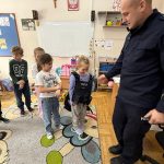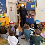 W oddziale przedszkolnym 0c miało miejsce spotkanie z policjantem – jednym z rodziców dziecka uczęszczającego do grupy. Celem spotkania było zapoznanie dzieci z zawodem policjanta oraz kształtowanie postaw związanych z bezpieczeństwem.