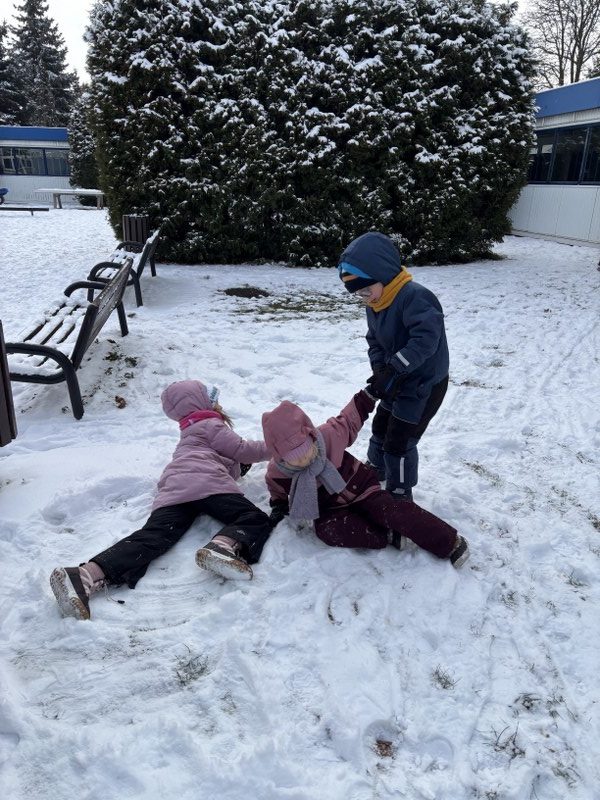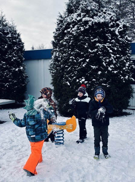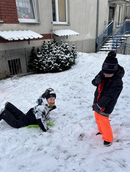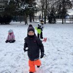 Dzieci z radością rzucały śnieżkami i korzystały z zimowych sprzętów. Uśmiechy i dobry humor towarzyszyły wszystkim dzieciom, a aktywność na śniegu dostarczyła wielu pozytywnych emocji i niezapomnianych wrażeń w tym mroźnym dniu.